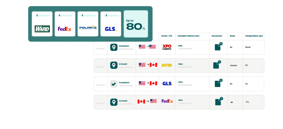 Your negotiated rates and our cross-border carrier network, automatically compared so you always find the best rate, every shipment, fast, informed and frictionless. Cross-border complexity, navigated.
